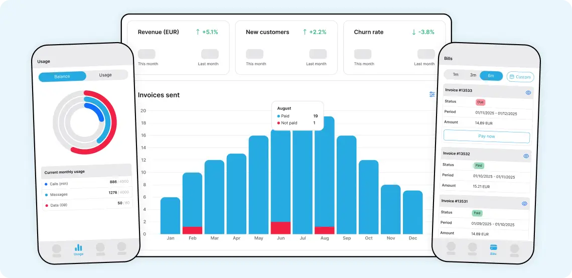 - Selbstbedienungsportale: Offers customizable web and mobile portals for customers to manage their accounts, view usage, pay bills, and modify services.