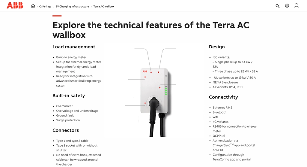 - Los cargadores de ABB incorporan a menudo funciones de equilibrado de la red, lo que contribuye a la estabilidad de ésta y reduce los costes de infraestructura para los operadores de la red.