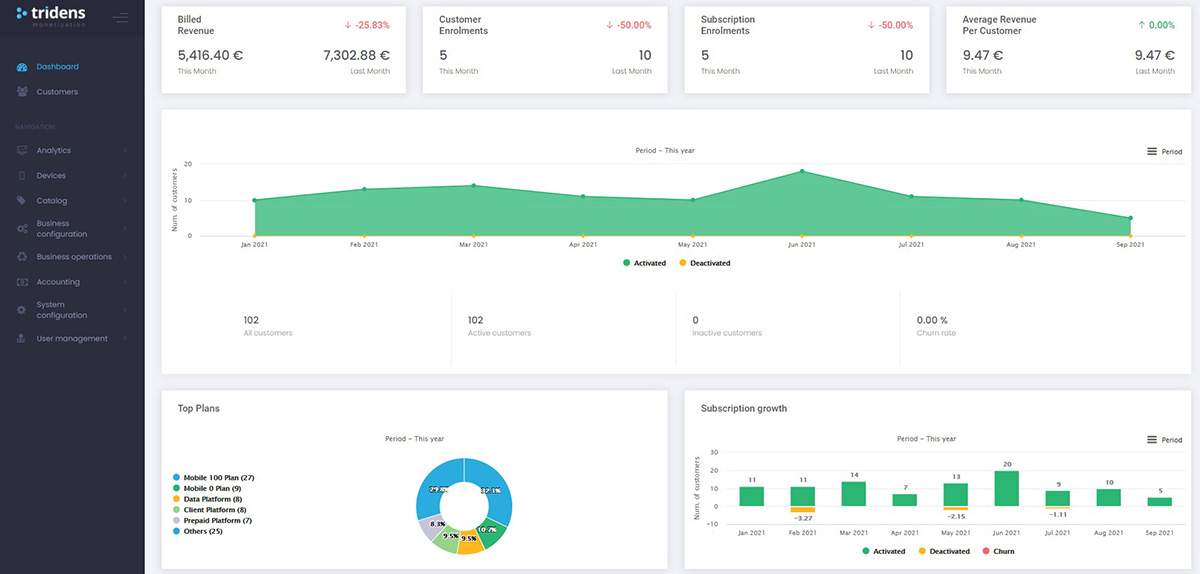 Un'ampia gamma di funzioni consente alle aziende di scalare i loro servizi in abbonamento, automatizzando la fatturazione, la gestione dei clienti e facilitando una business intelligence completa con report e analisi.