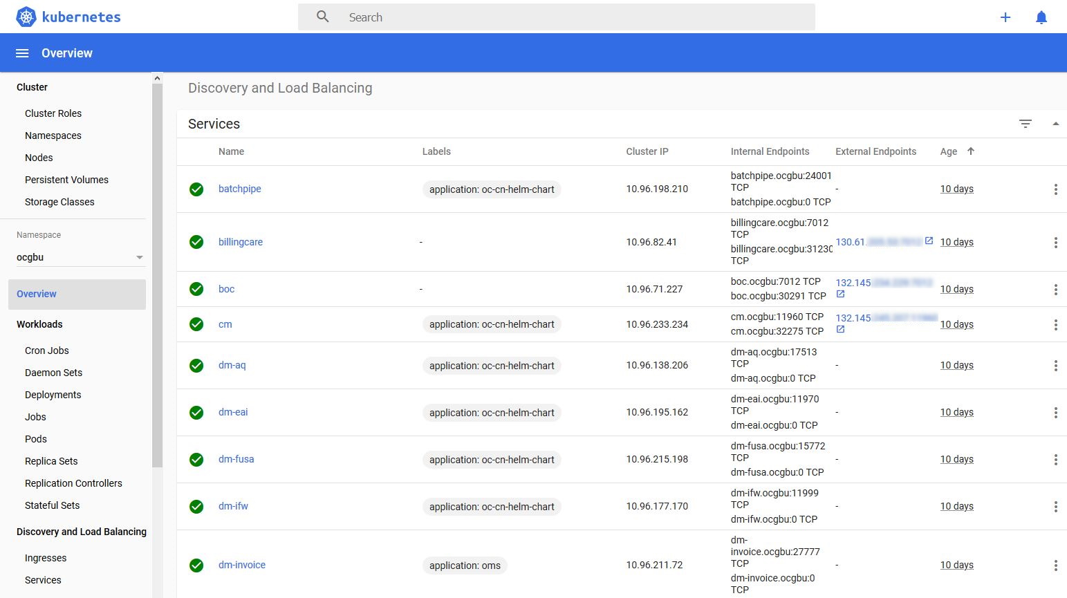 Note that you have to deploy oc-cn-helm-chart in a different namespace (in our example “ocgbu”) than oc-cn-init-db-helm-chart.